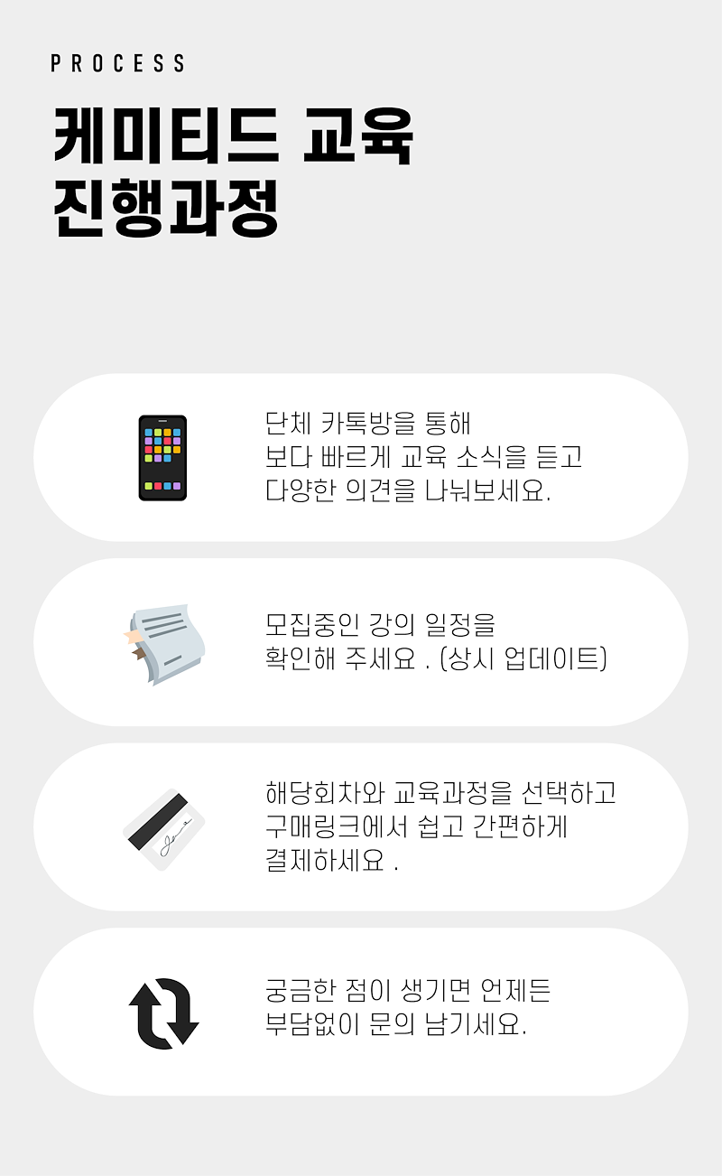 2) 부분환불 : 당일 교육시작 전 취소시 수강 금액의 50% 환불 가능