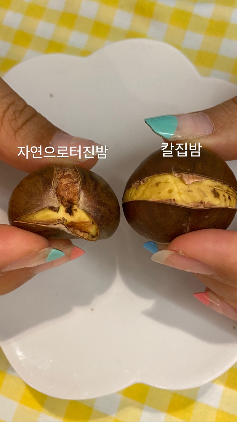 가공 과정에서 밤 껌질에 트임이 생기기때문에